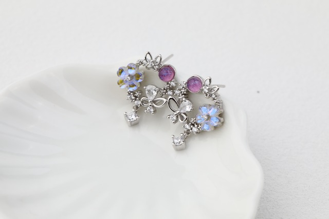 【E56】七夕限定デザイン バタフライフラワースタッドピアス