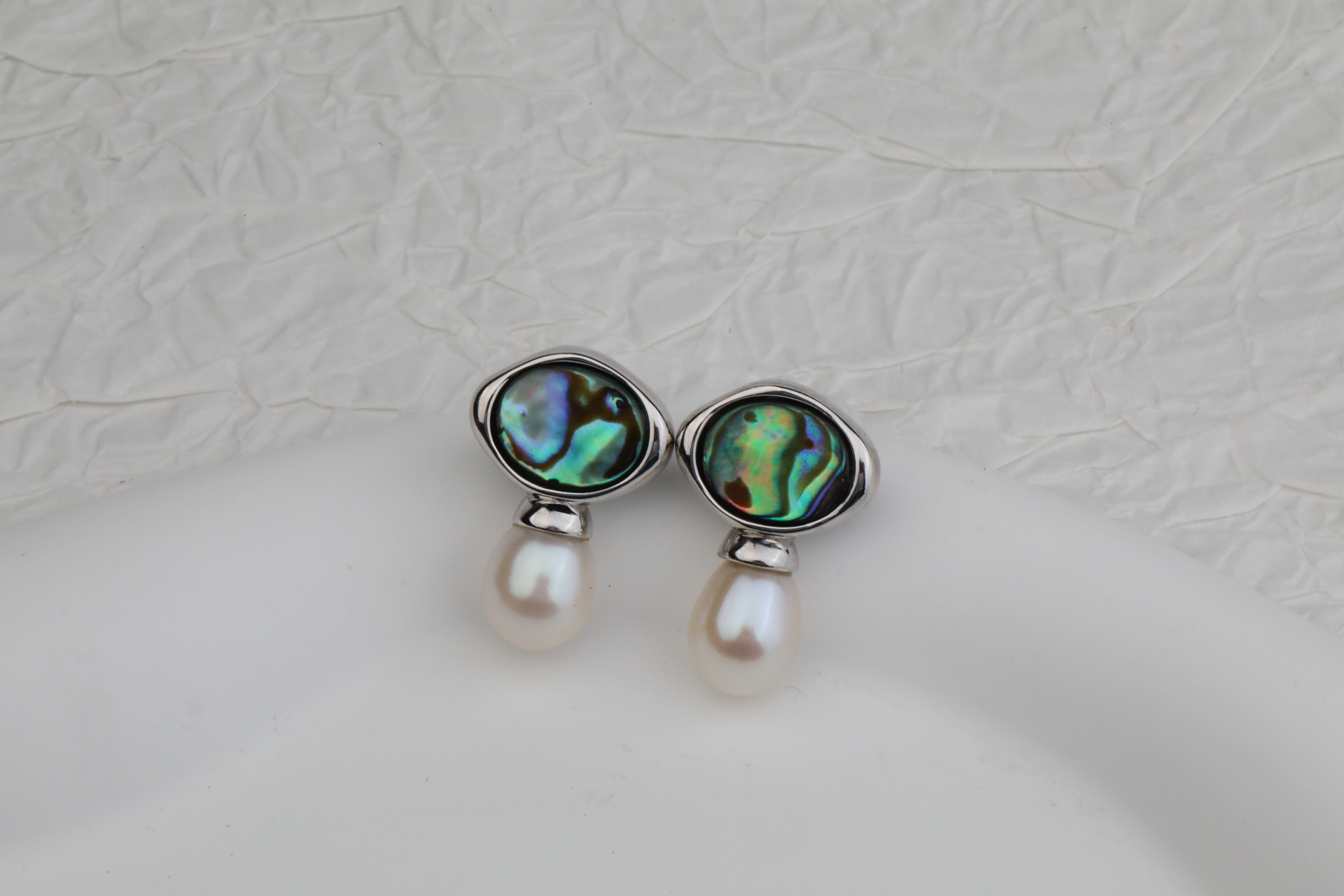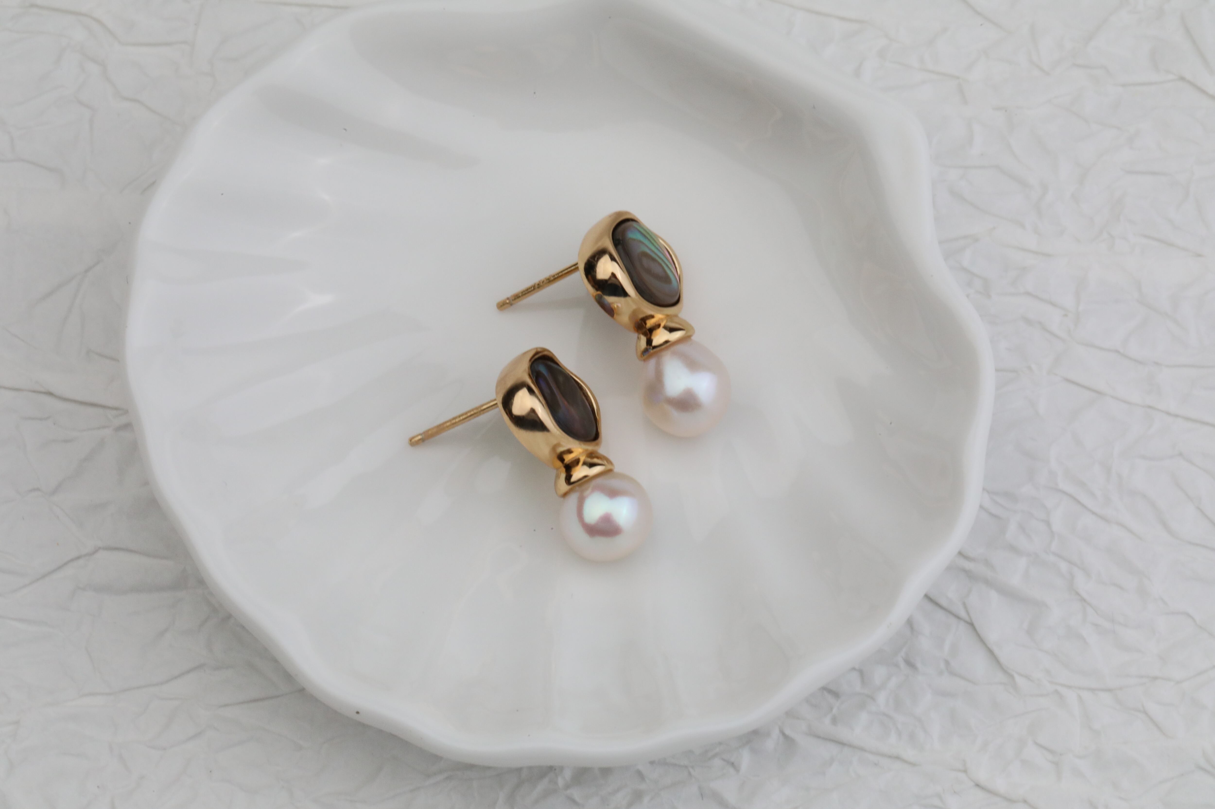 ナチュラルパール&シェルスタッドピアスは、柔らかな光を放つナチュラルパールと美しいシェルを使用した上品なアイテムです。