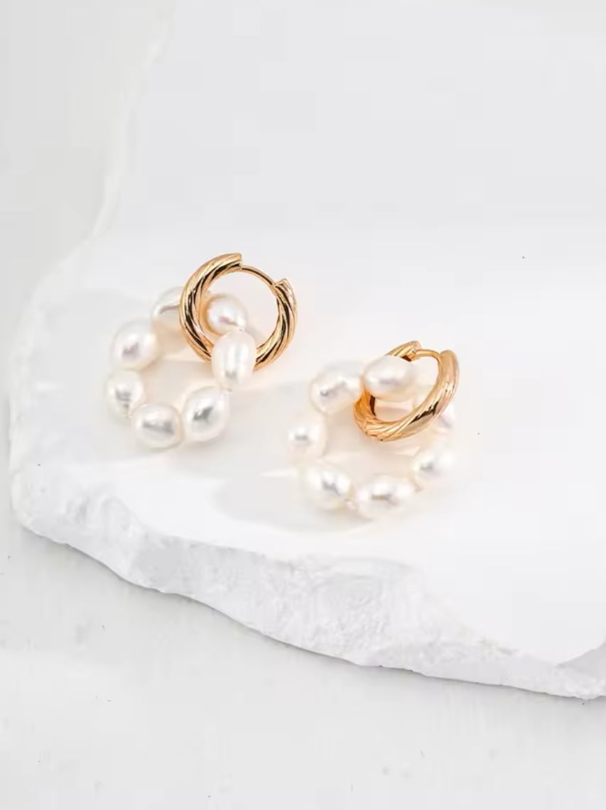 淡水パール3wayフープピアスは、優雅な淡水パールとスタイリッシュなフープデザインが特徴の多機能なアクセサリーです。