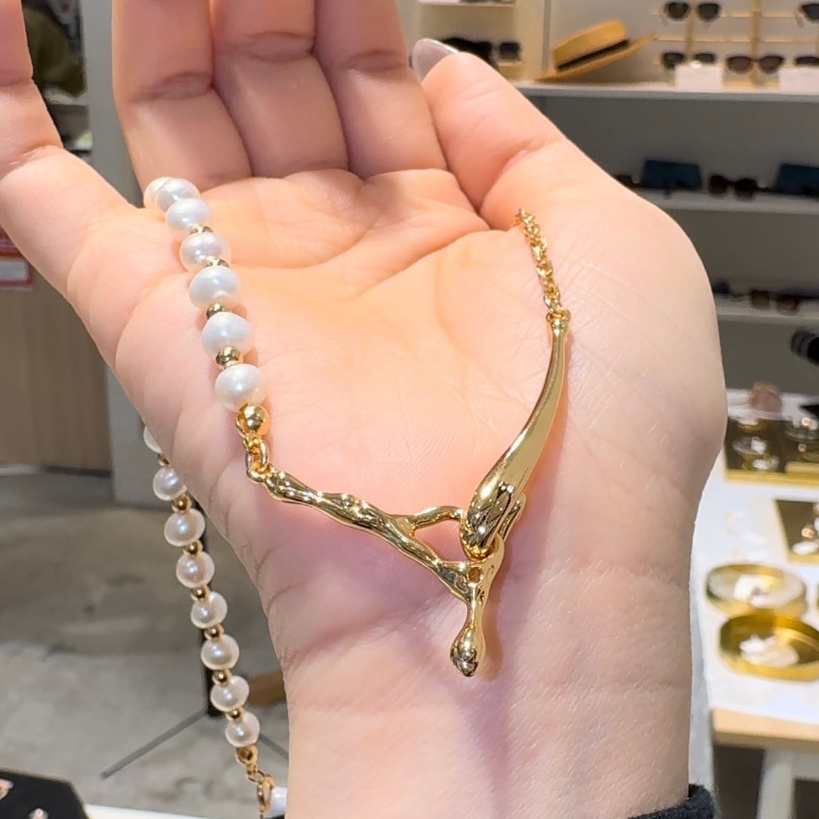 アシンメトリーライスパールネックレスは、ユニークなアシンメトリーのデザインと美しいパールが魅力的なアイテムです。洗練された印象を与えながら、日常使いから特別なシーンまで幅広くご活用いただけます。K18コーティングとシルバー925素材を使用しており、肌に優しい安心感が特徴です!