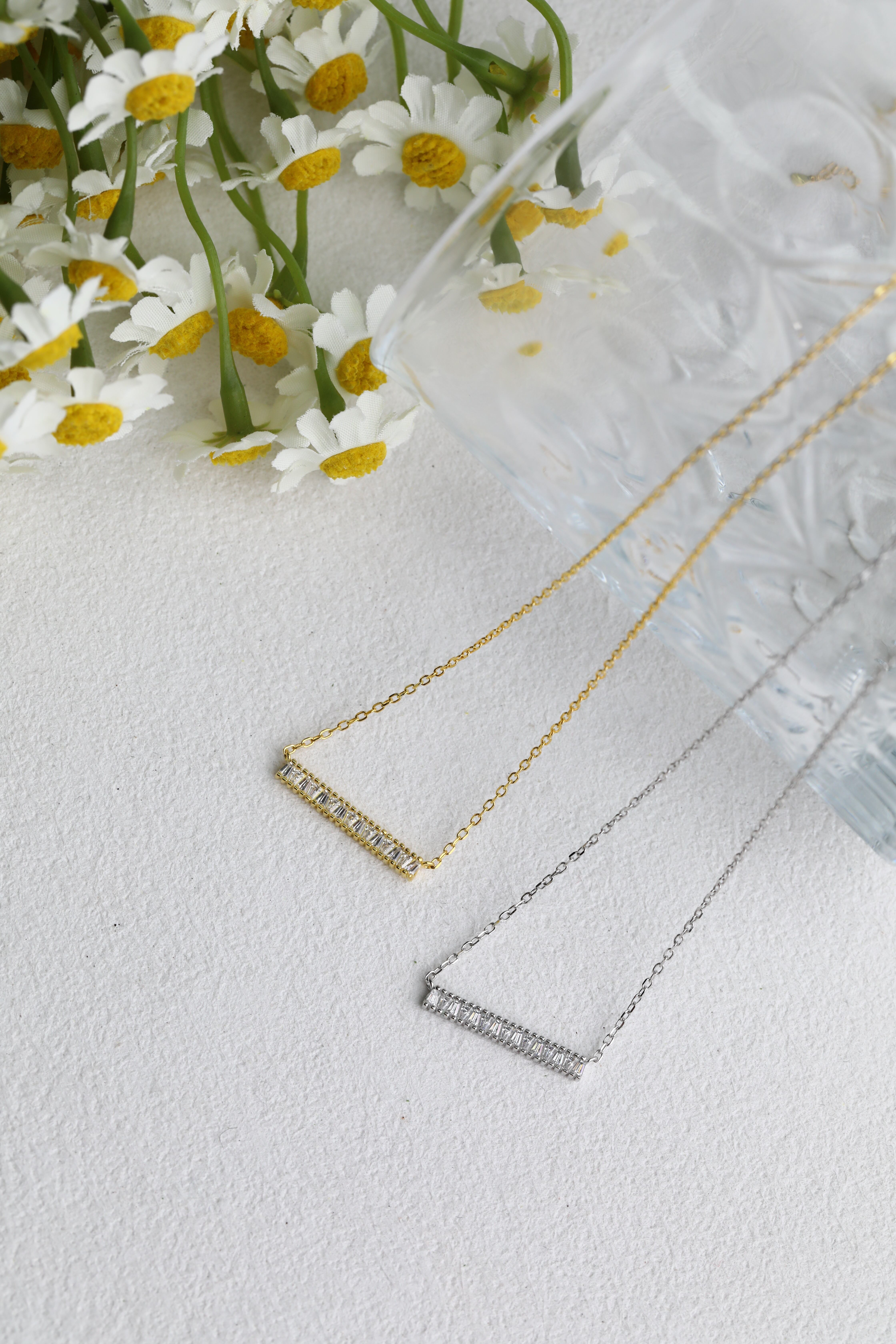 バーシェイプのジルコニアネックレスは、洗練されたデザインと輝く5Aクラスのジルコニアが特徴のアイテムです。925シルバーにゴールドコーティングを施した美しい仕上がりで、優雅な印象を与えます!サイズは45cmのチェーンに、 pendantは3.2*21.5mmというバランスのとれたデザイン。重さはわずか2.25gと軽やかで、デイリーユースから特別なシーンまで幅広くお楽しみいただけます。