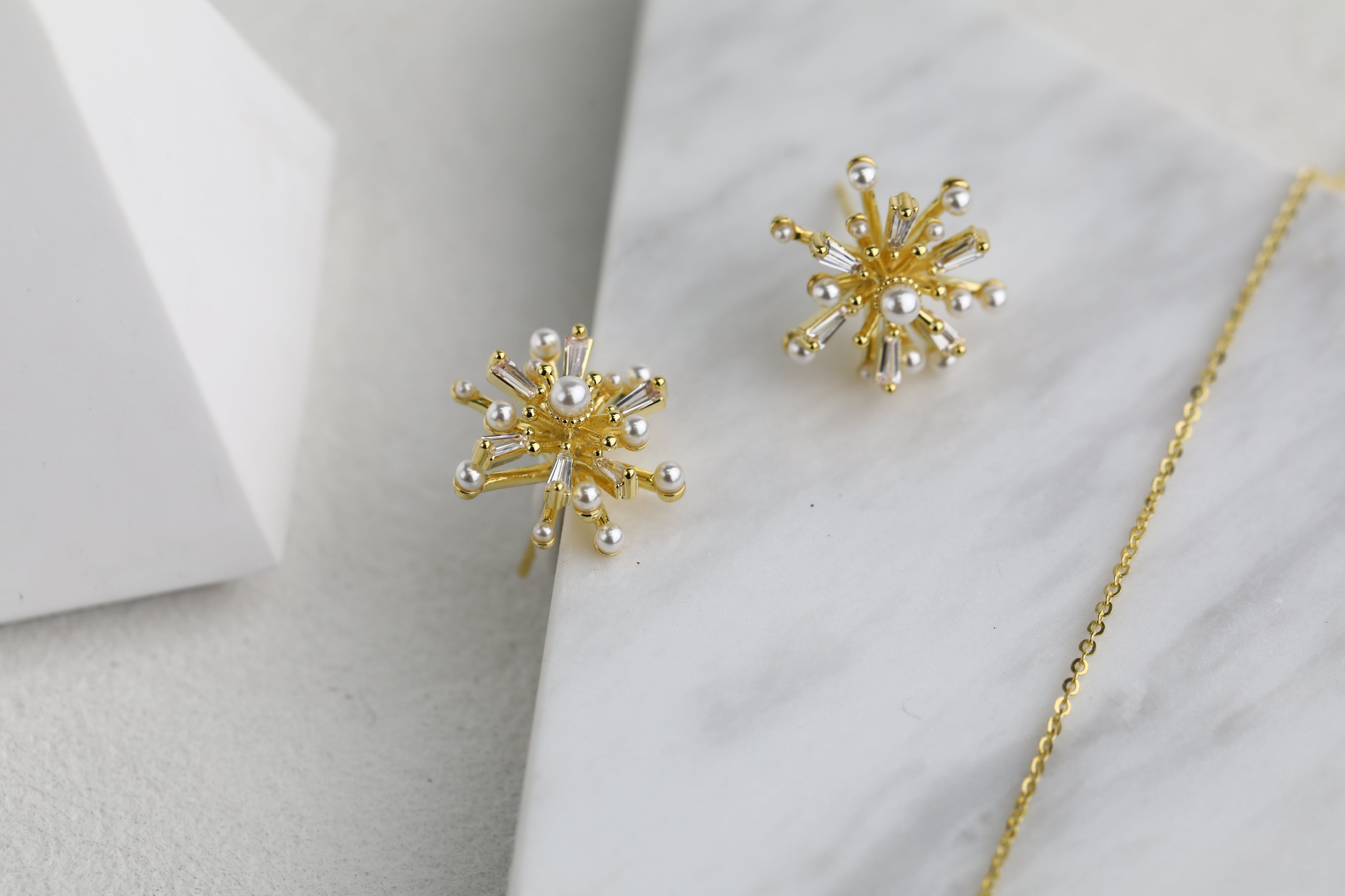 花の形のデザインのピアスは、貝殻の珠を使用したエレガントなアイテムです。銅にS925シルバーの針を組み合わせ、16Kゴールドコーティングを施した美しい仕上がりで、華やかな印象を与えます!小さな花のデザインは、どんなスタイルにも合わせやすく、デイリーコーデから特別な日まで、多様なシーンで活躍します。重さも軽やかで、快適な着用感を実現しています。