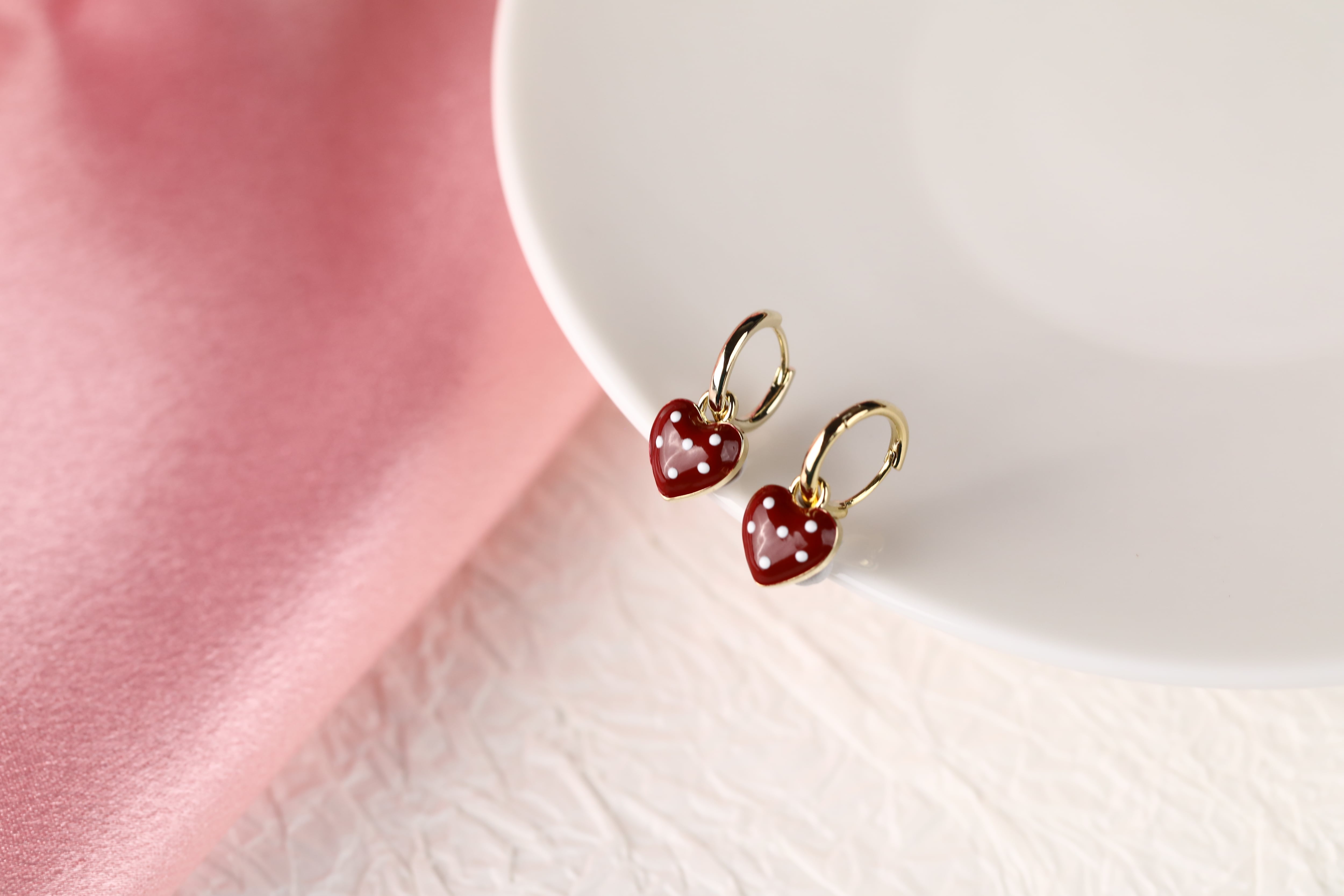 ガーリーなデザインのドットが可愛いハートピアスです。
