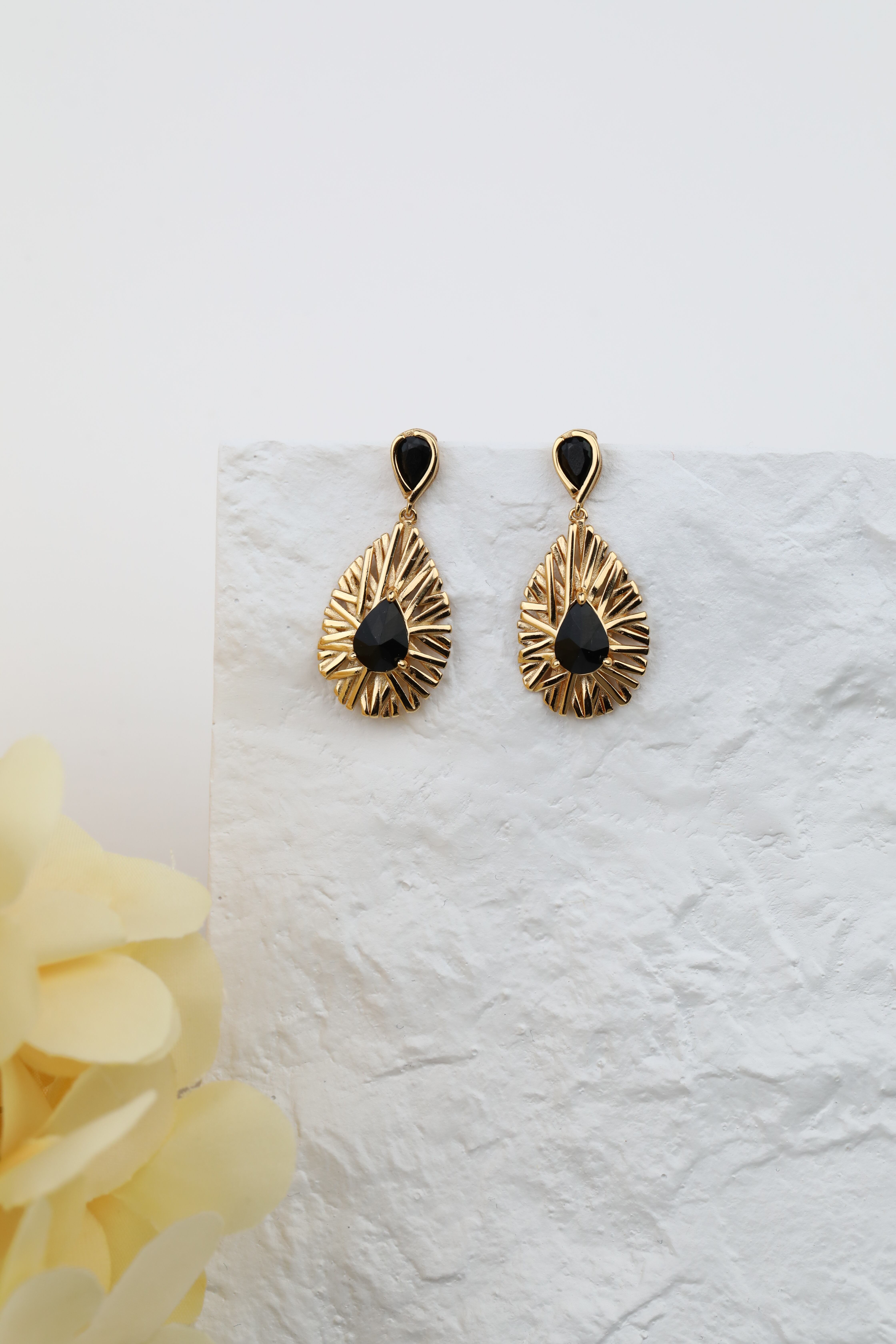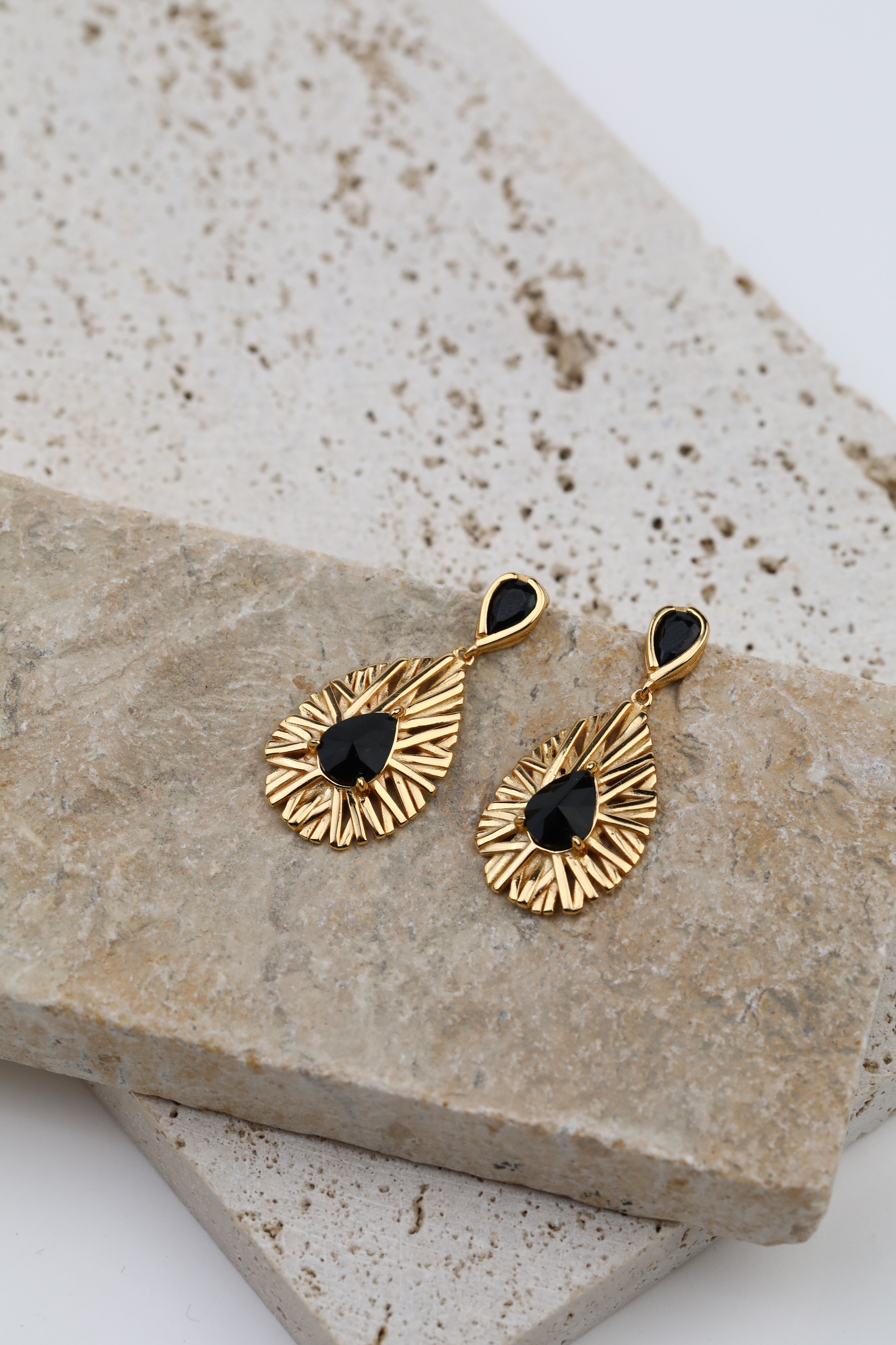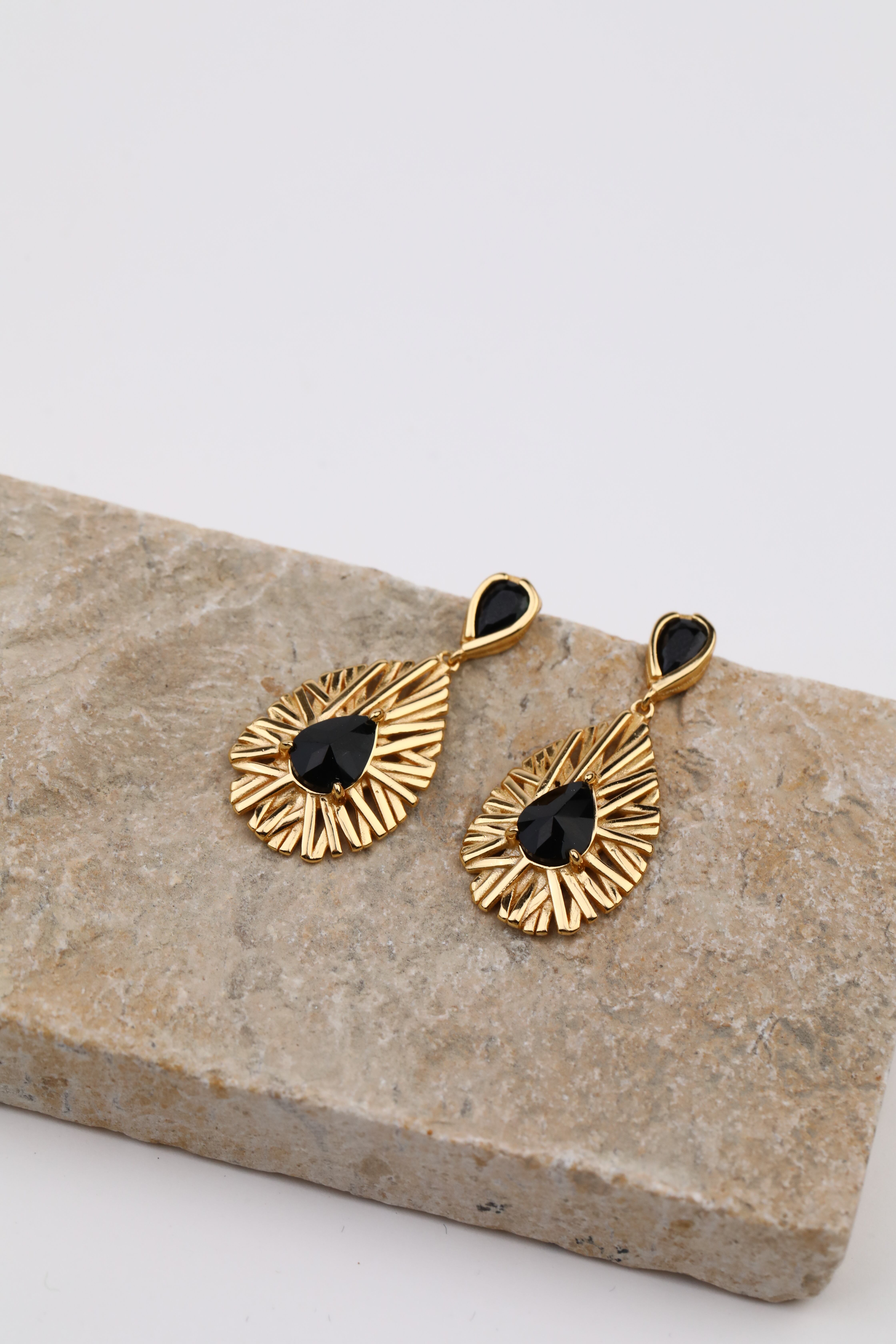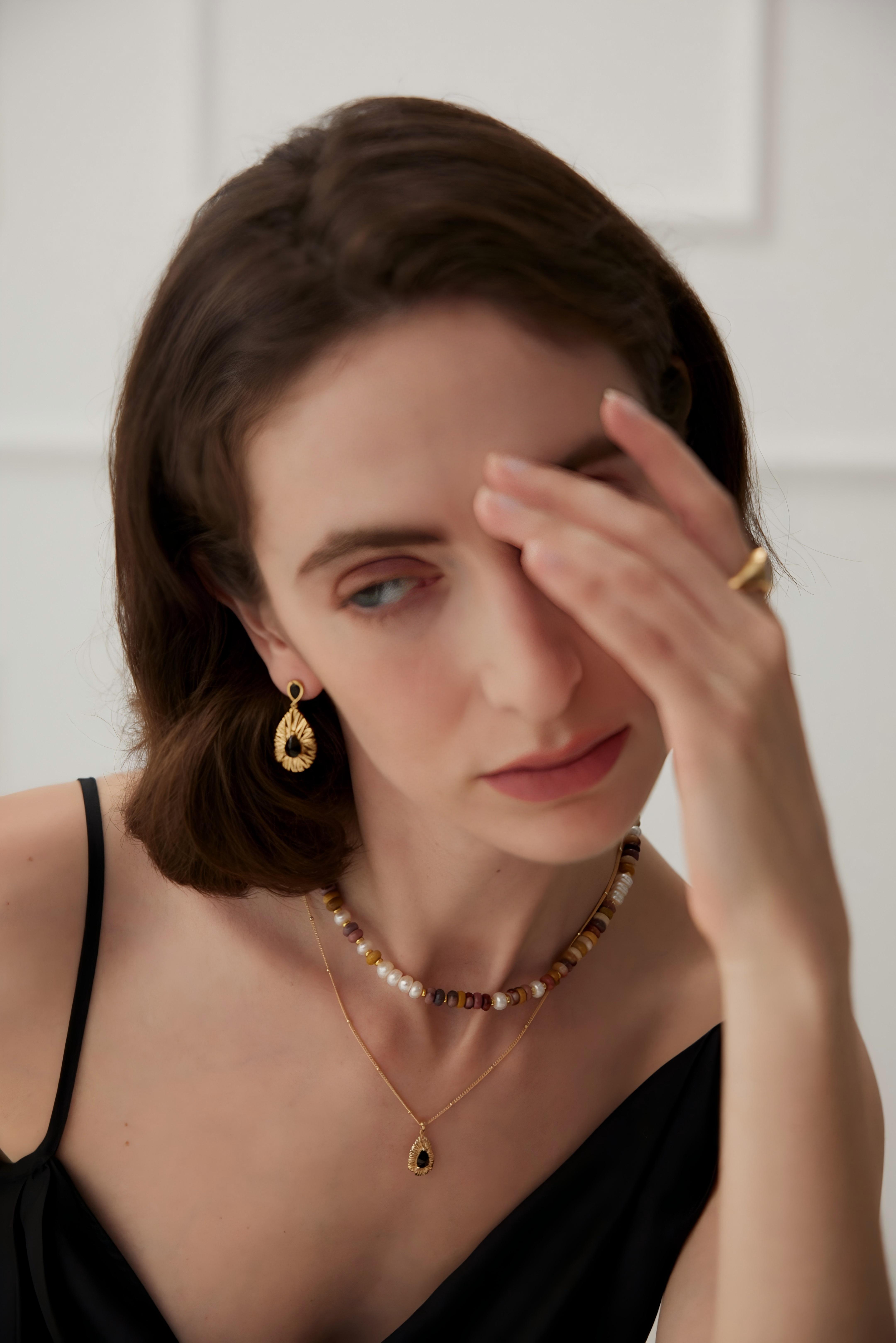 洗練されたティアドロップデザインのブラックジルコンピアスは、ビンテージゴールドとの組み合わせで、エッジィな雰囲気の中に上品な印象を与えます。どんなファッションにも合わせやすい黒アイテムは今季取り入れたいアイテムののひとつです。